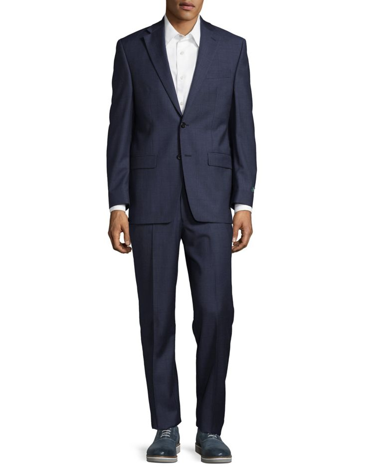 - Lauren Ralph Lauren Grid-Print Two-Button Wool Suit (Navy)