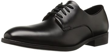 - Sleek plain-toe oxford featuring blind-eyelet lacing and low stacked heel