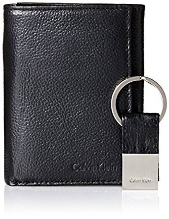 Calvin Klein Men’s Pebble Leather Slim Trifold Wallet and Key Fob Set – Link
