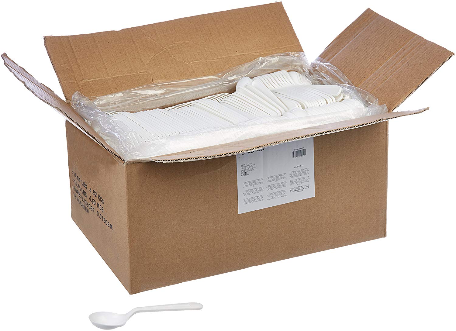 Case of 1,000 AmazonBasics Heavy-Weight Plastic Soup Spoons – Link
