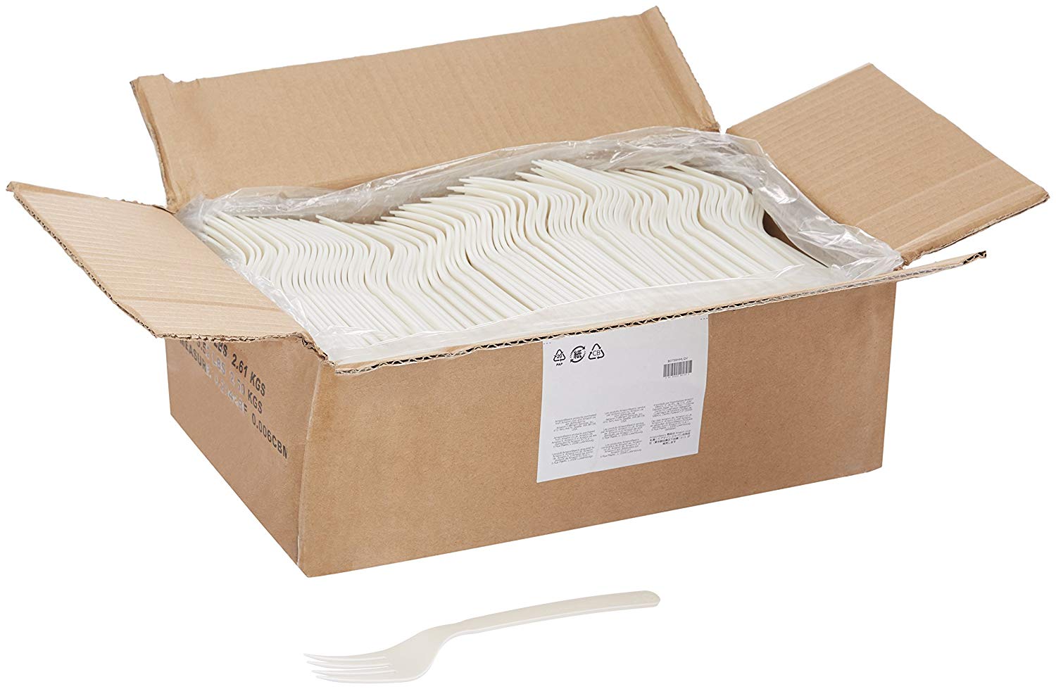 Case of 500 AmazonBasics Compostable Plastic Forks – Link