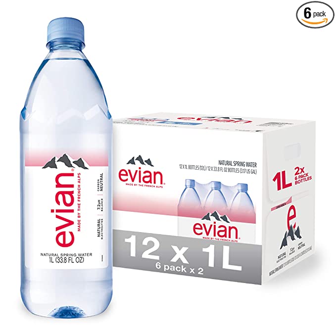 evian Natural Spring Water, 1 Liter Premium Water Bottles, 33.8 Fl Oz (Pack of 6) – Link