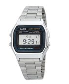 - Stainless steel watch featuring luminous rectangular dial with alarm and stopwatch