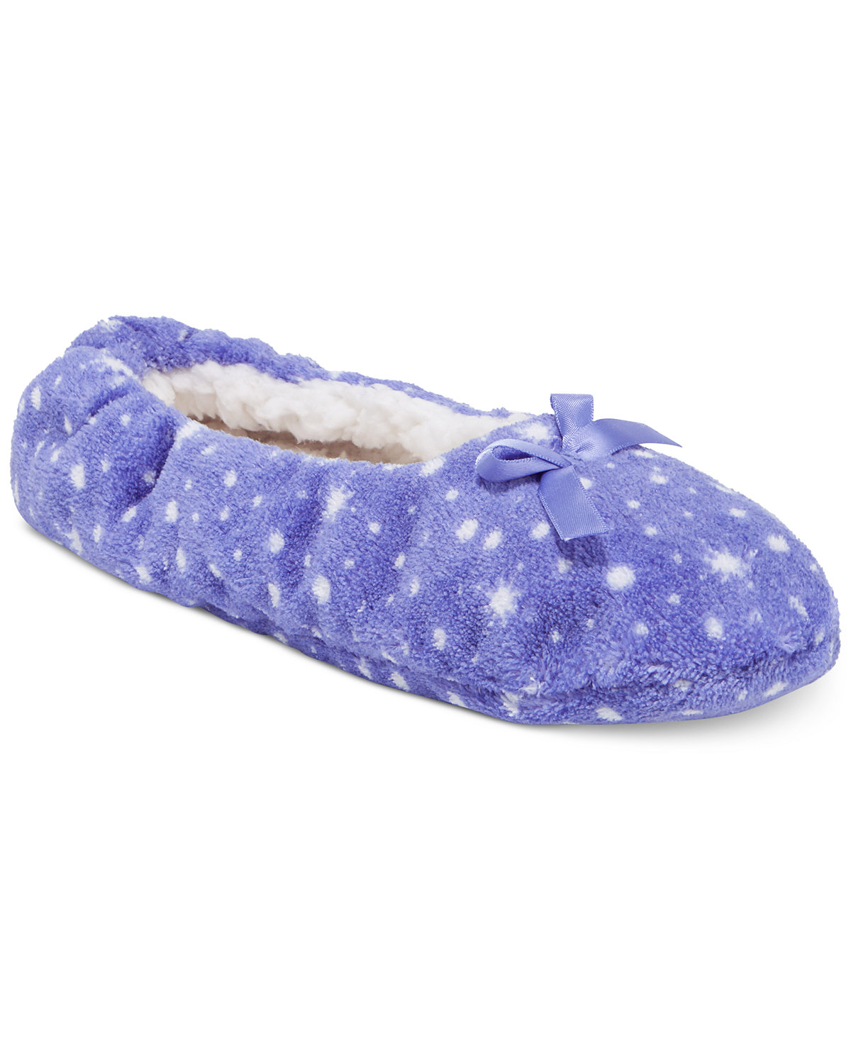 “Styled in supersoft polyester, these ultra-plush and comfy slipper socks from Charter Club feature a fun print for added cozy appeal.”