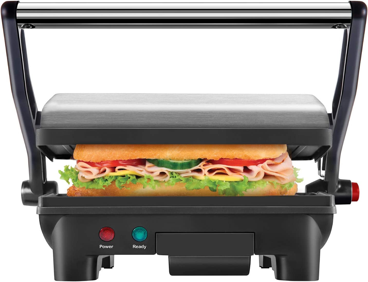 - HUNGRY FOR A SANDWICH? With just the push of a button, this Grill-Panini Press Combo can be used to press your custom sandwich or open at 180 degrees for grilling burgers, steaks, veggies and anything else you’re craving quickly and easily! Use it as a panini press for perfectly crisped bread- no cooking spray required.