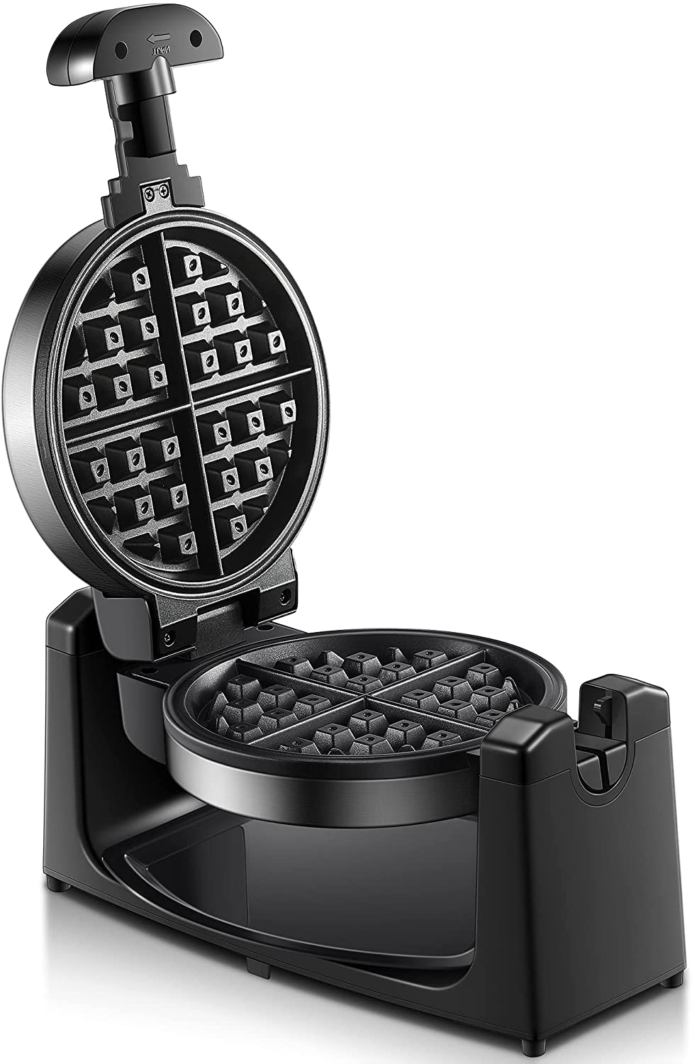 - [ ROTATING WAFFLE MAKER ] Enjoy Belgian waffles at home in minutes with this innovative & durable waffle maker, ergonomically designed handle facilitates that allows you to cook evenly with a flip of the wrist. To create thick, fluffy waffles that rival the ones prepared at the best restaurants.