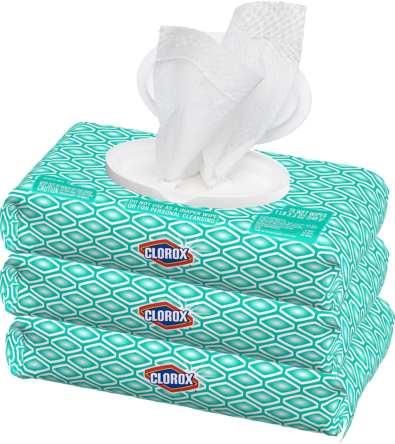 Clorox Disinfecting Bleach Free Cleaning Wipes, Fresh Scent, 75 Wipes, Pack of 3 – Link