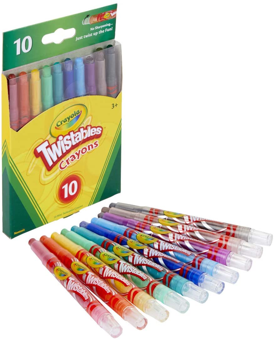 - CRAYOLA TWISTABLES CRAYONS: No sharpening needed, just twist to keep the color going! The durable plastic barrels are clear to let kids see the color inside while protecting against breakage. This pack offers 10 Mini Twistables Crayons in assorted classic colors