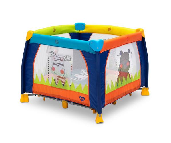 “Playtime can take place anytime, anywhere, with this fuss-free play yard from Delta Children! Featuring a compact fold and travel bag, it quickly offers baby plenty of space while its brightly printed mesh sides entice imaginative play and provide parents a clear view.”