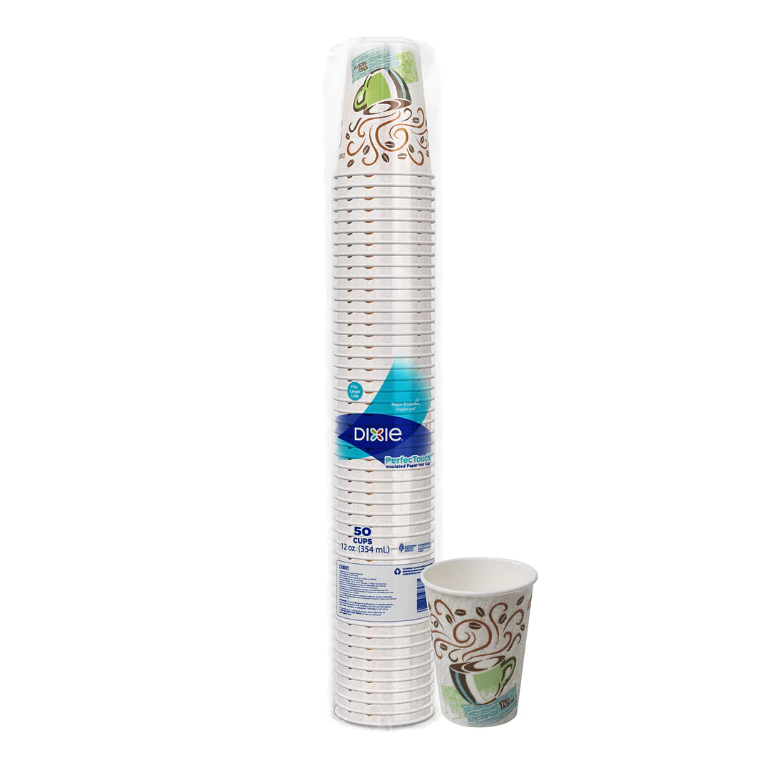 Dixie PerfecTouch Insulated Paper Hot Cups, 12 oz., Coffee Haze, 50/Pack – Link