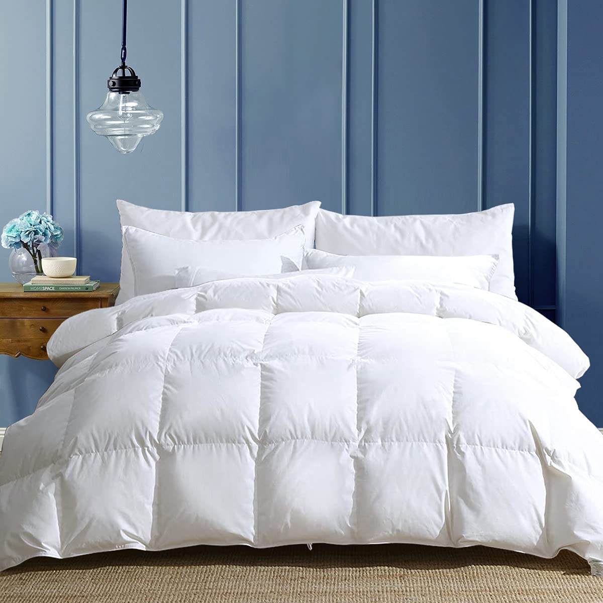 - 【100% Cotton】: The down comforter with white goose feather filling is very skin-friendly, warm and highly breathable, giving you a comfortable night.