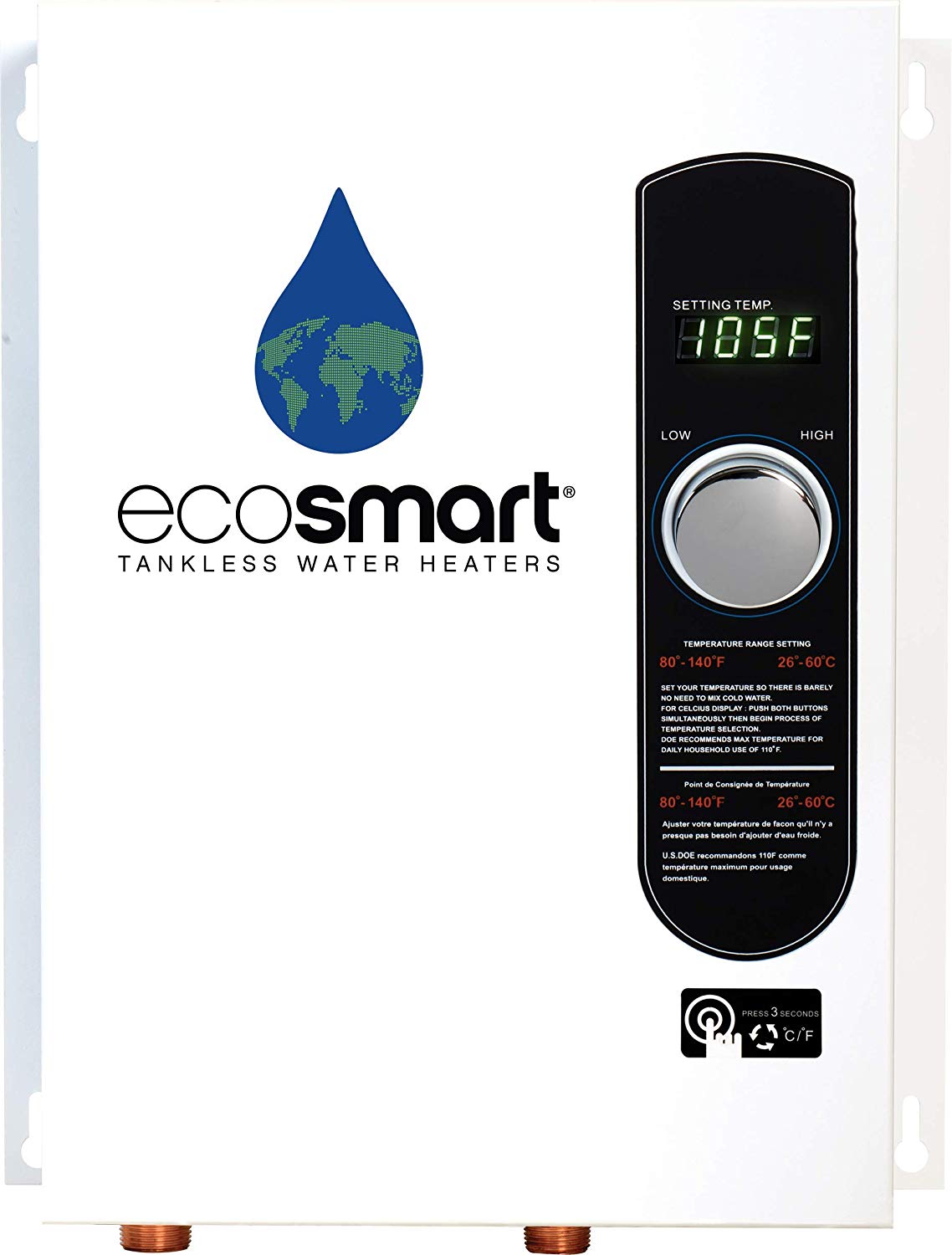 - Never run out of hot water with an ECOSMART tankless water heater.