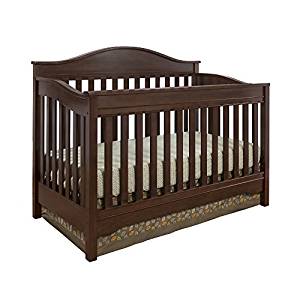 - Solid wood 4-in-1 convertible crib in a walnut finish