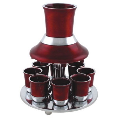 Enamel on Aluminum Kiddush Fountain & Wine Divider Set with 8 Cups for Shabbat and Holidays – Link