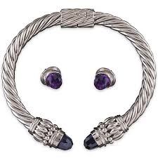 Interchangeable Cable Bracelet by Lenox “It’s like having two bracelets in one! The stainless steel Interchangeable Cable Bracelet features two interchangeable pairs of stones that screw into the ends of the bracelet. Choose the black agate or the amethyst depending on your outfit, or use one of each for a multi color look. Perfect for dressy or casual, this bracelet is sure to become a favorite jewelry item. Also makes a great gift!”