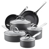 - Heavy-duty hard-anodized aluminum cookware cooks quickly and evenly with outstanding durability and nonstick cooking performance