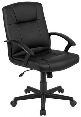 - You can’t go wrong with a black leather office chair to furnish your home office, dorm room or professional office. The height adjustable swivel chair is equipped with arms to comfortably support your upper body