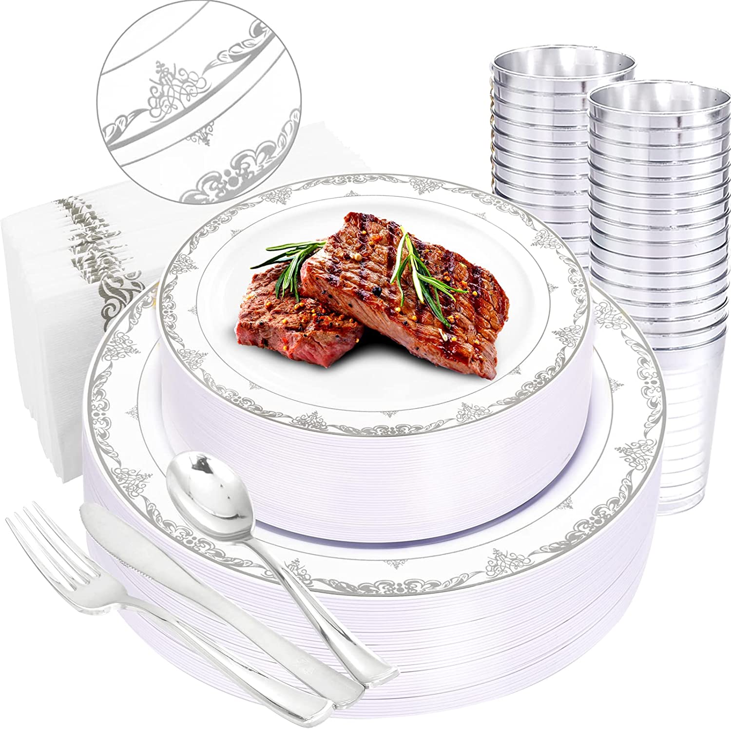 FLOWERCAT 175PCS Silver Plastic Plates Dinnerware Set – Link
