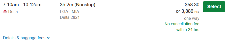 If you have the Chase Sapphire Reserve credit card, you can book the $58 ticket via the Chase Travel portal for only 3,886 Chase Ultimate Reward points. If you have either the Chase Sapphire Preferred or Chase Ink Preferred credit cards, your total will be just 4,644 Chase Ultimate Reward points.