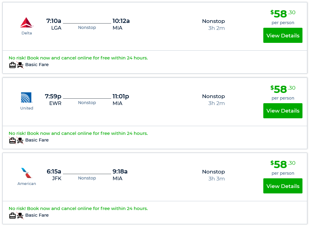 There are currently flights available from New York to Miami, or vice versa from Miami to New York, for only $58-$68 each way.