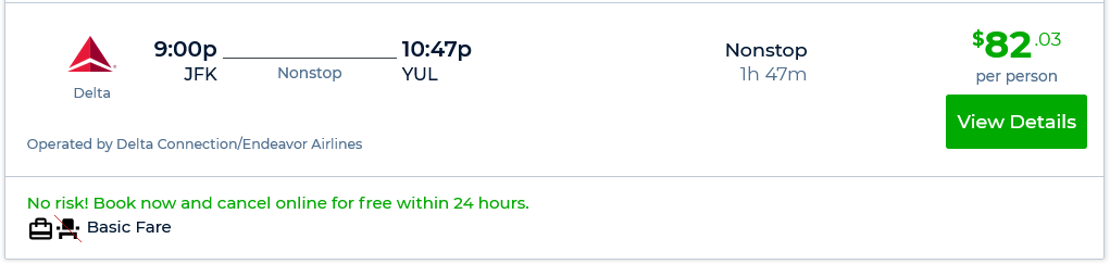 Valid New York-Montreal $82-$84 dates: