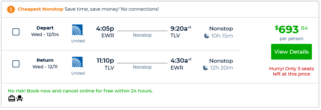 Hurry – You can currently snag nonstop flights from Newark to Tel Aviv, Israel for only $693 round-trip on United Airlines!
