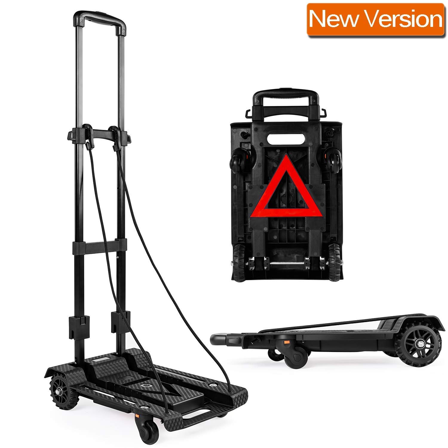 - Heavy Duty: This folding hand truck is Heavy Duty With Solid Construction. Which is More Durable Than Other Hand Trucks. Can Hold Up to 155 lbs Capacity And Not Easy to Shake When Pulling. To ensure the stability, we suggest customers to place the goods in the middle of the truck base and mind your speed during using, also walk slowly when you are using it in rough road