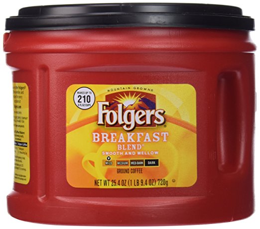 “Start your day off with Folgers Breakfast Blend, a soothingly smooth, mild-roast ground coffee, and the rest of the day may go just as smoothly. Intricate, light, well-balanced flavor notes wake you up with mild taste and a fresh aroma. “