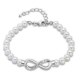 - Wearing Experience: Charm white pearl bracelets handcrafted cultured,highly polished, affixed with the highest quality 18K gold plated clasp,embellished with crystals. Chain Length:7.2″ plus 2.36″adjustable extender,comfortable to wear.