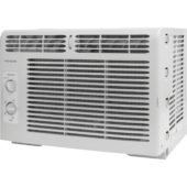 - 5,000 BTU mini-compact air conditioner for window-mounted installation uses standard 115V electrical outlet (Window mounting kit included)