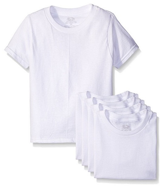 Amazon has the Fruit of the Loom Boys’ Cotton White T Shirt (5-Pack) marked down to only $5.35!