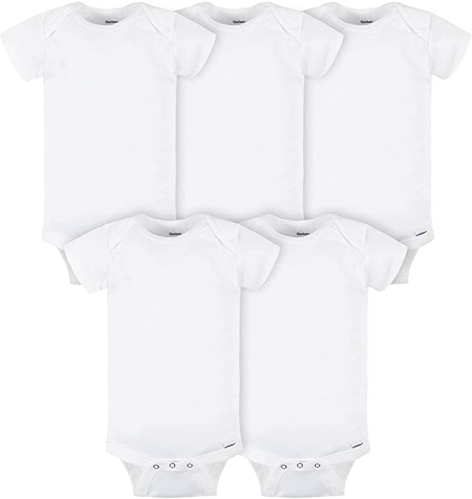 - Includes five solid, short sleeve Onesies Brand bodysuits