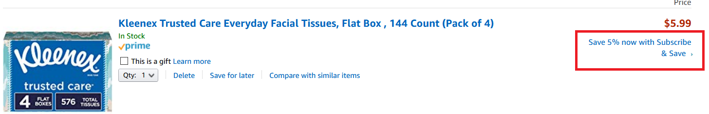 - Add 3 packs of the Kleenex Trusted Care Everyday Facial Tissues, 144 Tissues per Flat Boxes, Pack Of 6 to your cart = total 18 boxes.