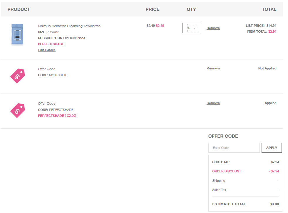 - Add 6 packs of Neutrogena Makeup Remover Cleansing Towelettes – 7 Count package to your cart.
