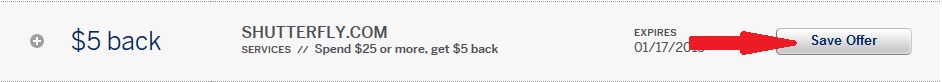 - Get a $5 statement credit with your registered American Express credit card when you spend $25 or more online at Shutterfly / Office Max. Valid through 01/17/15.