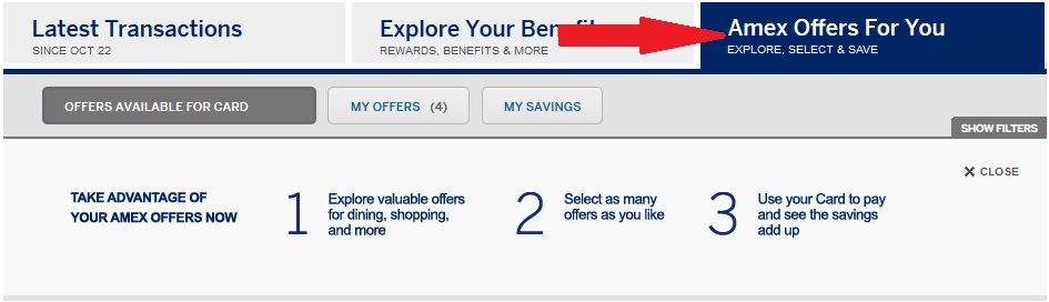 Note: Before clicking on “Save Offer” be sure to check under all your American Express credit cards. If you have this offer under more than 1 card, first open a new tab in the same browser for each of the cards that this offer is found under. Once you have this offer open on all available accounts, only then hit “Save Offer”. This way you can get this offer more than once, as normally, once you click “Save Offer” on one account, the same offer on the other accounts disappear.