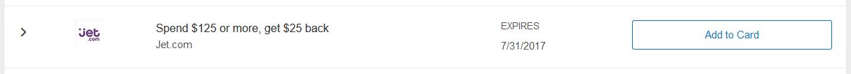 American Express has released some new targeted offers, including an offer for a $10 statement credit on a $50+ Purchase online at Walmart.com and $25 Statement credit on a $125+ purchase online at Jet.com!