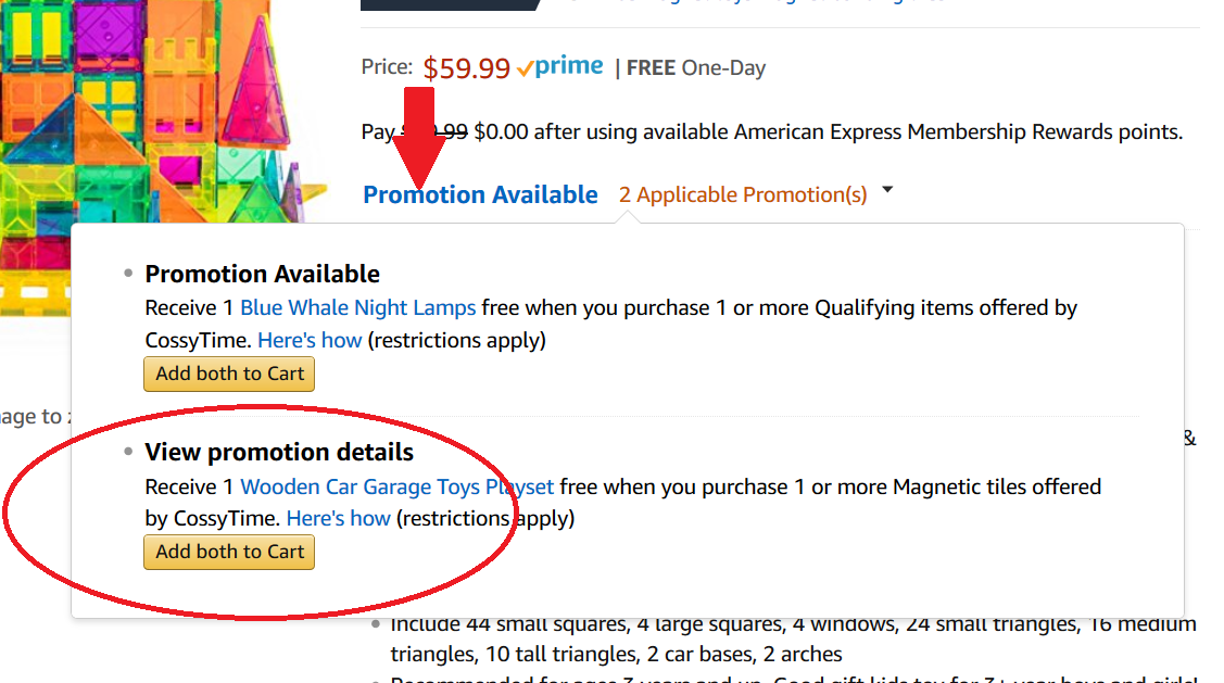 - Them click on “Add Both To Cart” under the Wooden Car Garage Playset Promotion.