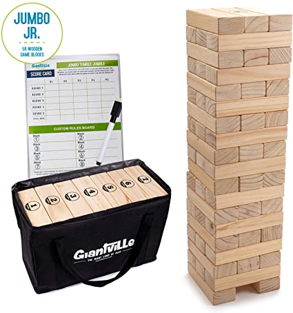 Giant Tumbling Timber Toy – Jumbo JR. Wooden Blocks Floor Game, 56 Pieces – Link