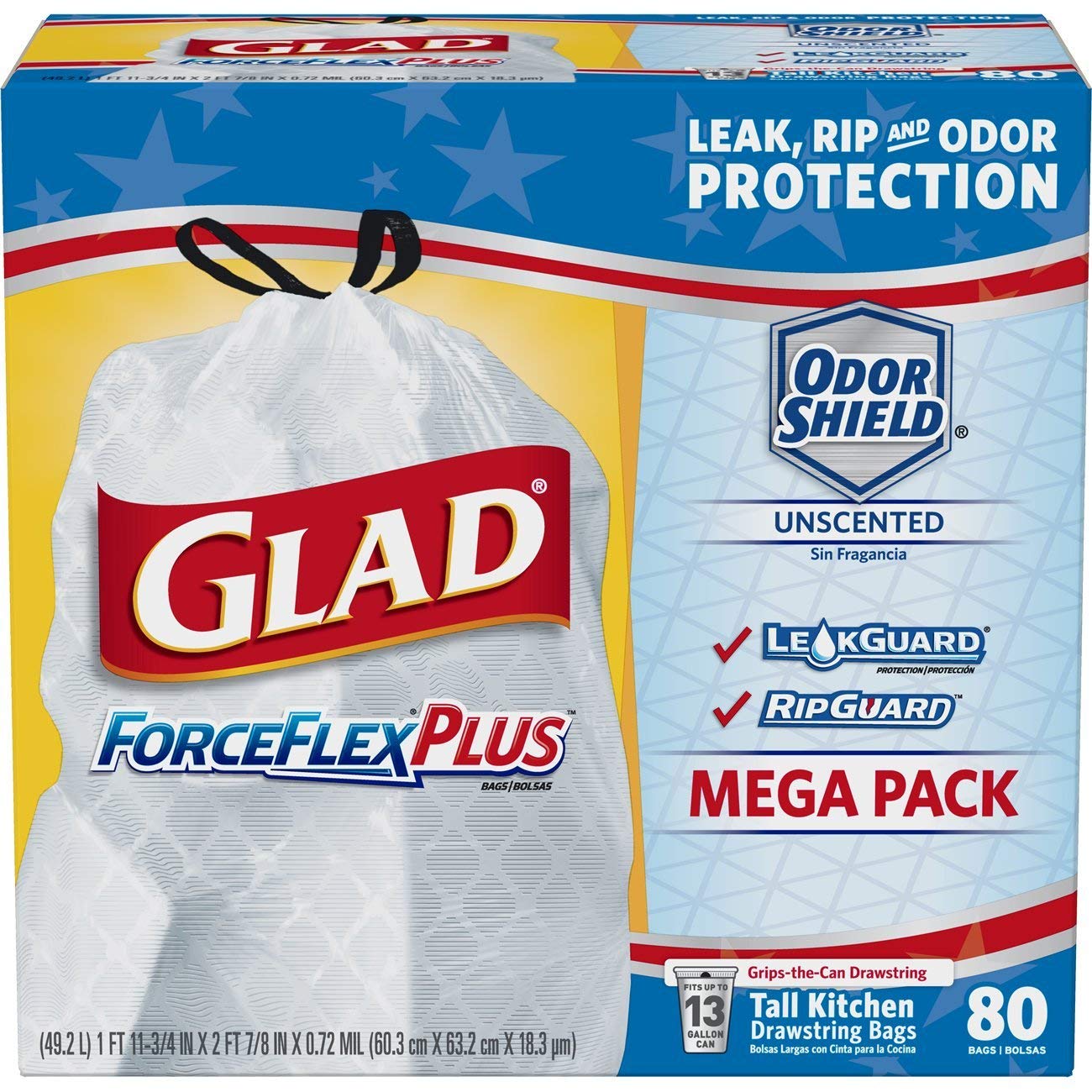 Glad ForceFlexPlus Tall Kitchen Drawstring Trash Bags, Unscented, 80 ct – Link