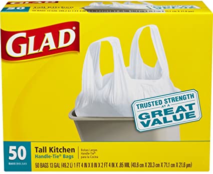 Glad Tall Kitchen Handle-Tie Trash Bags – 13 Gallon White Trash Bag – 50 Count – Link
