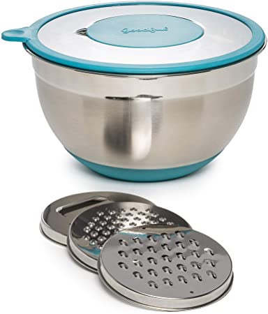 - STAY PUT: The stainless steel bowl features a non-slip bottom so the bowl won’t slide across the counter when grating ingredients, tossing a salad or making some delicious whipped cream.