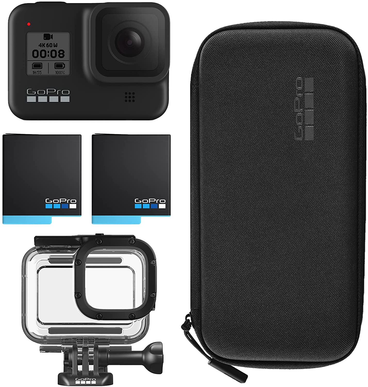 - Includes: GoPro HERO8 Black Camera, Rechargeable Battery (2 Total), Protective Housing, and Carrying Case