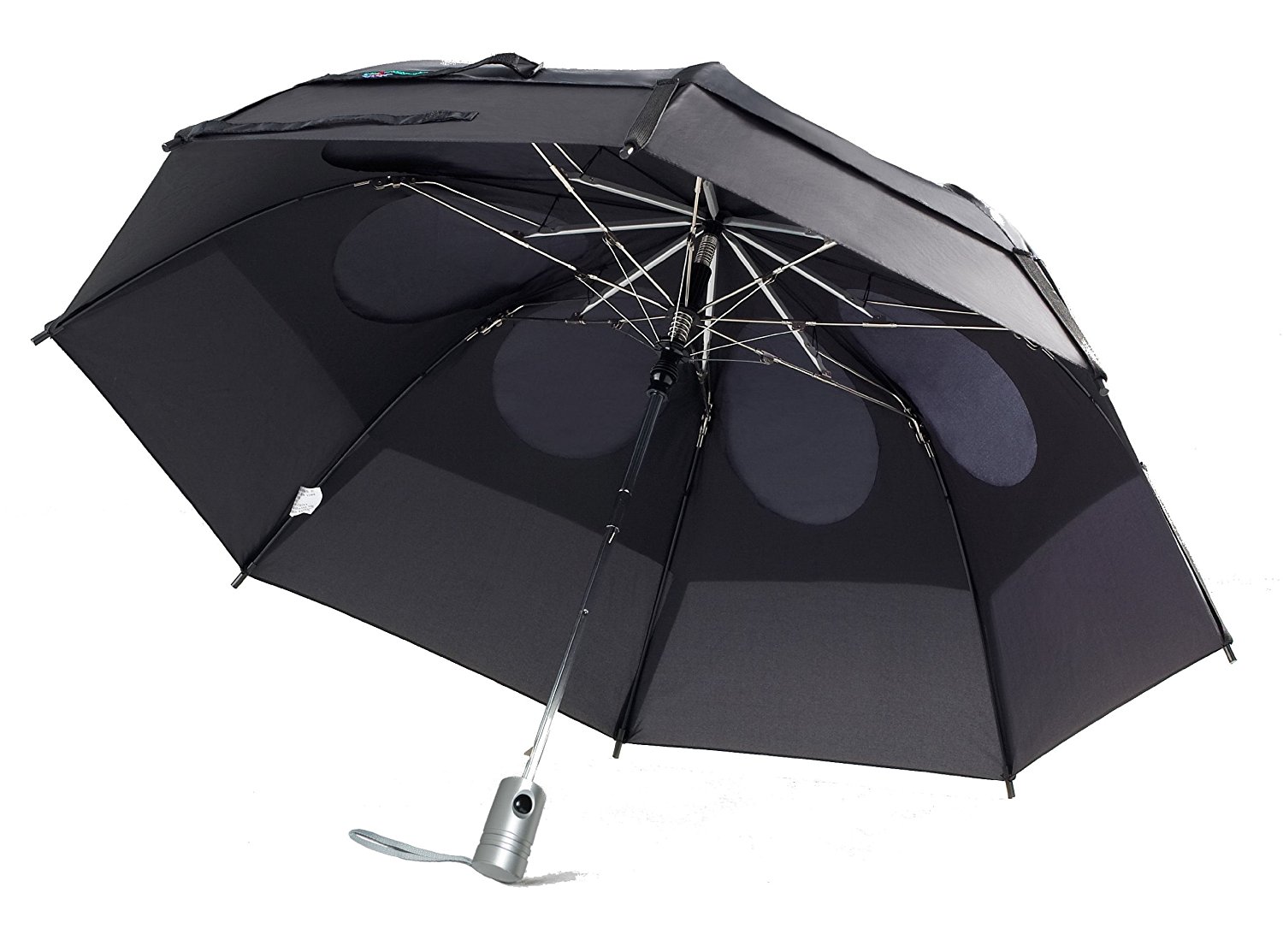 - Extra-sturdy folding umbrella with award-winning 43-inch double-canopy design