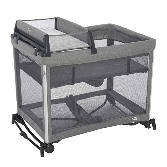 - DreamNest PLUS SERIES includes portable crib frame, breathable mesh mattress, rocker attachment, bassinet, changing table, cot legs, and portable travel bag