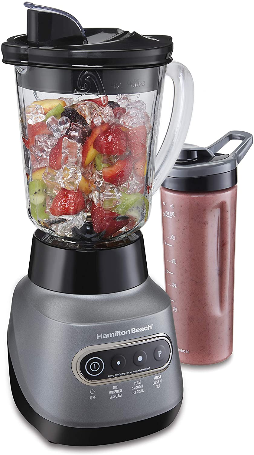 - 2 jars Included for versatile blending: a 40 oz. Glass blender jar and 20 oz. Travel jar with to-go lid are included, making it easy to blend drinks for every occasion. A flip top lid fits right on the personal blending jar, making it easy to blend and run.