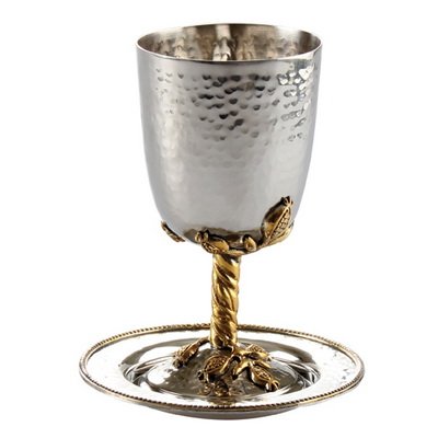 - This is a unique and beautiful Wine Goblet Kiddush Cup, with a small saucer that goes underneath it.