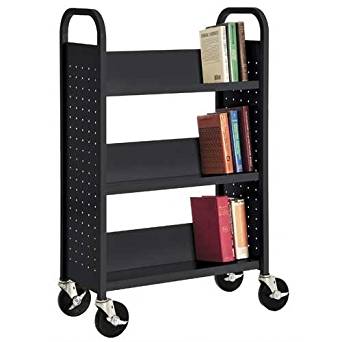 Sandusky Black Heavy Duty Welded Steel Single Sided Sloped Shelf Book Truck, 3 Shelves, 200 lb. Capacity, 46″ Height x 28″ Width x 14″ Depth – Link