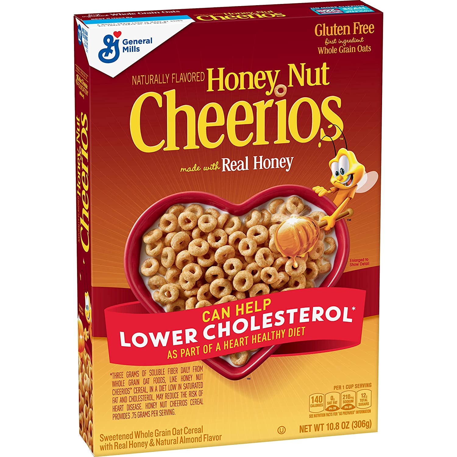 - HEART HEALTHY: Three grams of soluble fiber daily from whole grain oat foods, like Honey Nut Cheerios cereal, in a diet low in saturated fat and cholesterol, may reduce the risk of heart disease. Honey Nut Cheerios cereal provides .75 grams per serving