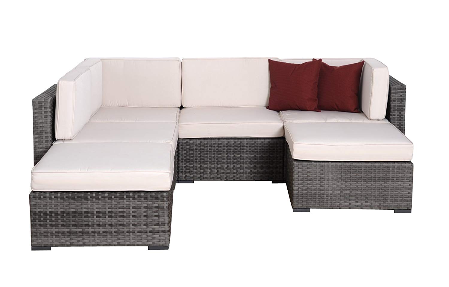 Atlantic Clermont 6-Piece Grey Wicker Seating Set with Off-White Cushions – Link